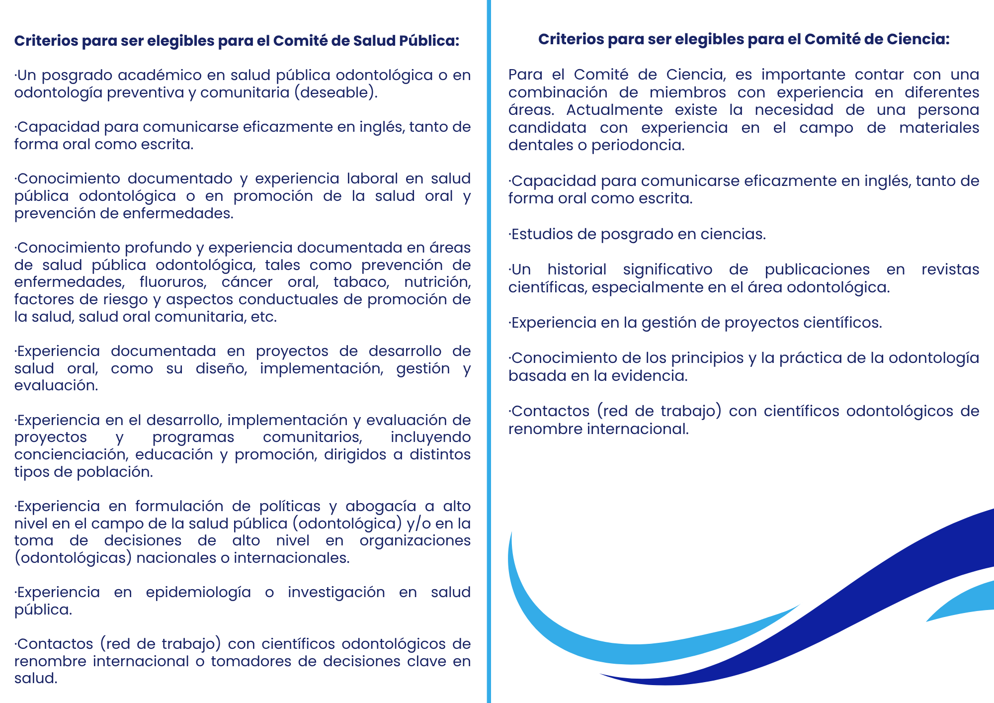 El Colegio de Cirujanos Dentistas de Costa Rica tiene el agrado de invitar a sus agremiados a postularse para ser considerados como candidatos a integrar los Comités Permanentes de la Federación Dental Internacional (FDI), una valiosa oportunidad para representar al país en el ámbito internacional.